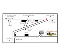 Take your next left into Thorn Lane following the new B&B sign and follow the road into our driveway leading to Jenkinsons Farmhouse Bed and Breakfast.